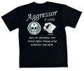 アグレッサーTシャツがモノトーンカラーになって再登場。飛行教導群 アグレッサーは2016年に新田原基地から小松基地に移駐。背中にAggressorのロゴとシンボルマークのドクロとコブラ、左胸にF-15DJの線画の機体とロゴがプリントされています。速乾タイプ 黒地