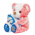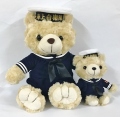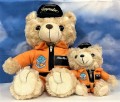 ご当地ベアが空の安全を願うかのようにブルーインパルスを大事に抱えています。ブルーインパルスとベアはマジックテープで付いているので、取り外すことも可能です。左足裏には6機編隊を表現する幾何学模様、右足裏にはブルーインパルスのエンブレムが刺繍されています。ブルーとピンクの2種。サイズ:座った状態で約18cm(個体差あり)