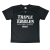 前面がシルバーのプリントに変わった、NEWカラーです。日本海に面し我が国を守る、F-15の各部隊が集まった第6航空団の小松基地です。背部には向かって左から303飛行隊 ファイティングドラゴン、中央に306飛行隊 ゴールデンイーグル、右に飛行教導隊 アグレッサーの各スコードロン。中央下部には小松基地救難隊。前面には TRIPLE EAGLES と大きくプリントされています。速乾タイプ 黒地